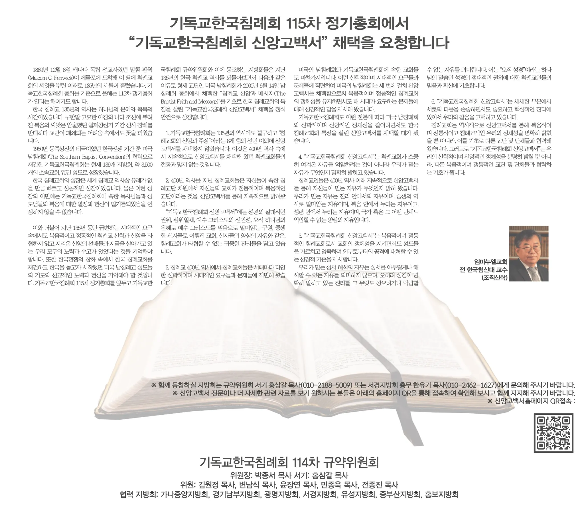 이번 제 115차 기독교한국침례교 총회 신앙고백서 채택을 위해 기재되는 관련 기고문입니다.